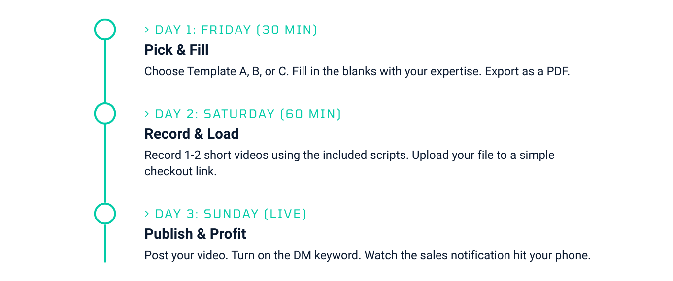 "Finally a product that isn't a 10-hour course. I built my checklist offer in one afternoon using Template B. It's clean, fast, and straight to the point."